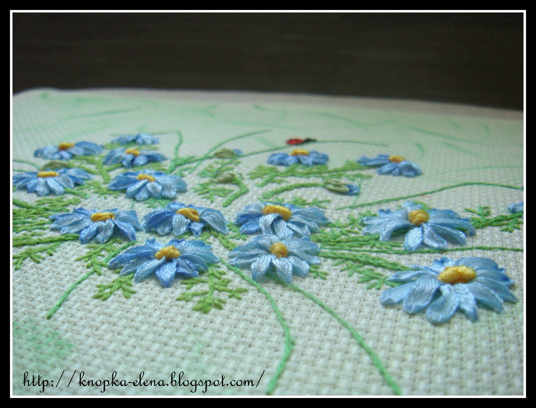 Никогда раньше не вышивала лентами, решила попробовать.