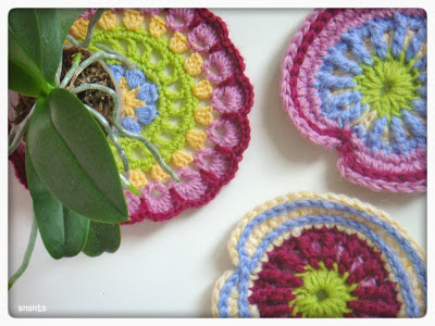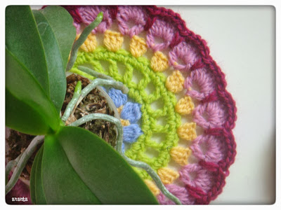 Выполнено из остатков шерстяной пряжи крючком. Идея подсмотрена в интернете, воплощение моё:)